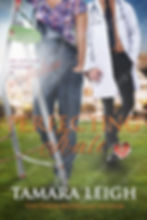 PART II: Looking lovely! Regarding the picture of Bridget and J.C., the greenery around them is busy in relation to the other pictures. Can you soften that? And J.C.’s hair should be medium brown, and let’s go back to Bridget’s bouquet being white. For the sign, mark out “Welcome To” with black rather than purple. Since the title font yellow is a bit dark compared to the other books in the series, let’s lighten it.