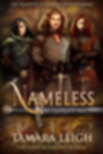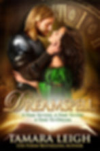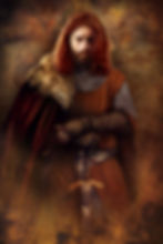 Beautiful mockups! Lothaire’s scruff and his armor are perfect. Let’s go lighter hair, longer, and nape-bound. Can you minimize his neck crease? Laura's hair color is lovely, but add a bit more and make the braid larger. I like the blue gown, but the color is too similar to The Longing and The Vexing. Since I haven’t had a heroine in this series wearing red, let’s go with red gown/copper cape. Background wise, I'm thinking copper like the cape and author name banner the same red of her gown.